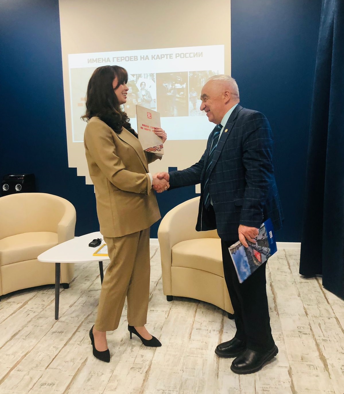 Кондратьева А.М. передала в дар организаторам проекта книгу «Имена героев на карте России».
