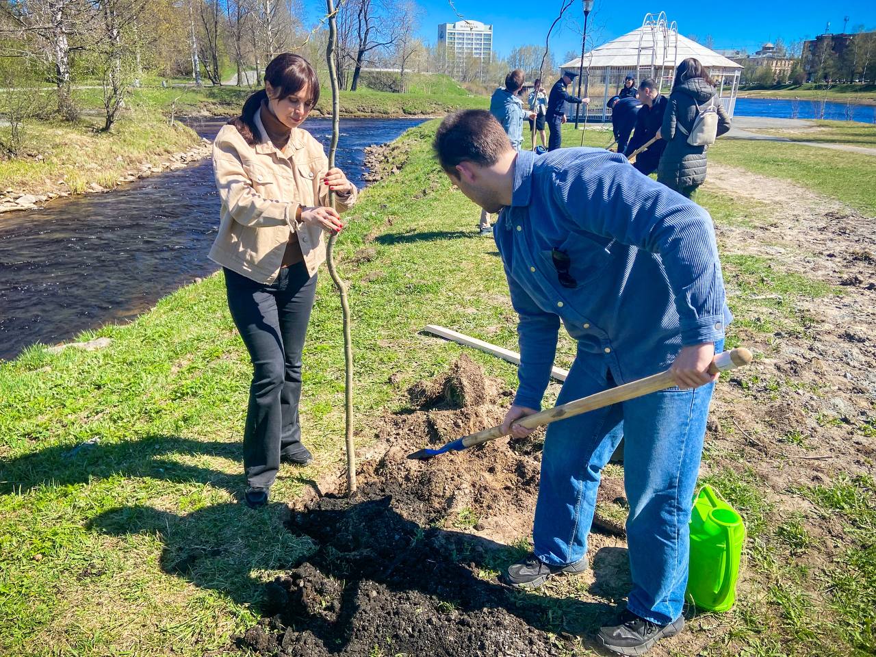 Карельский Росреестр принял участие в высадке деревьев. В Зарецком парке были посажены саженцы яблонь и ив.