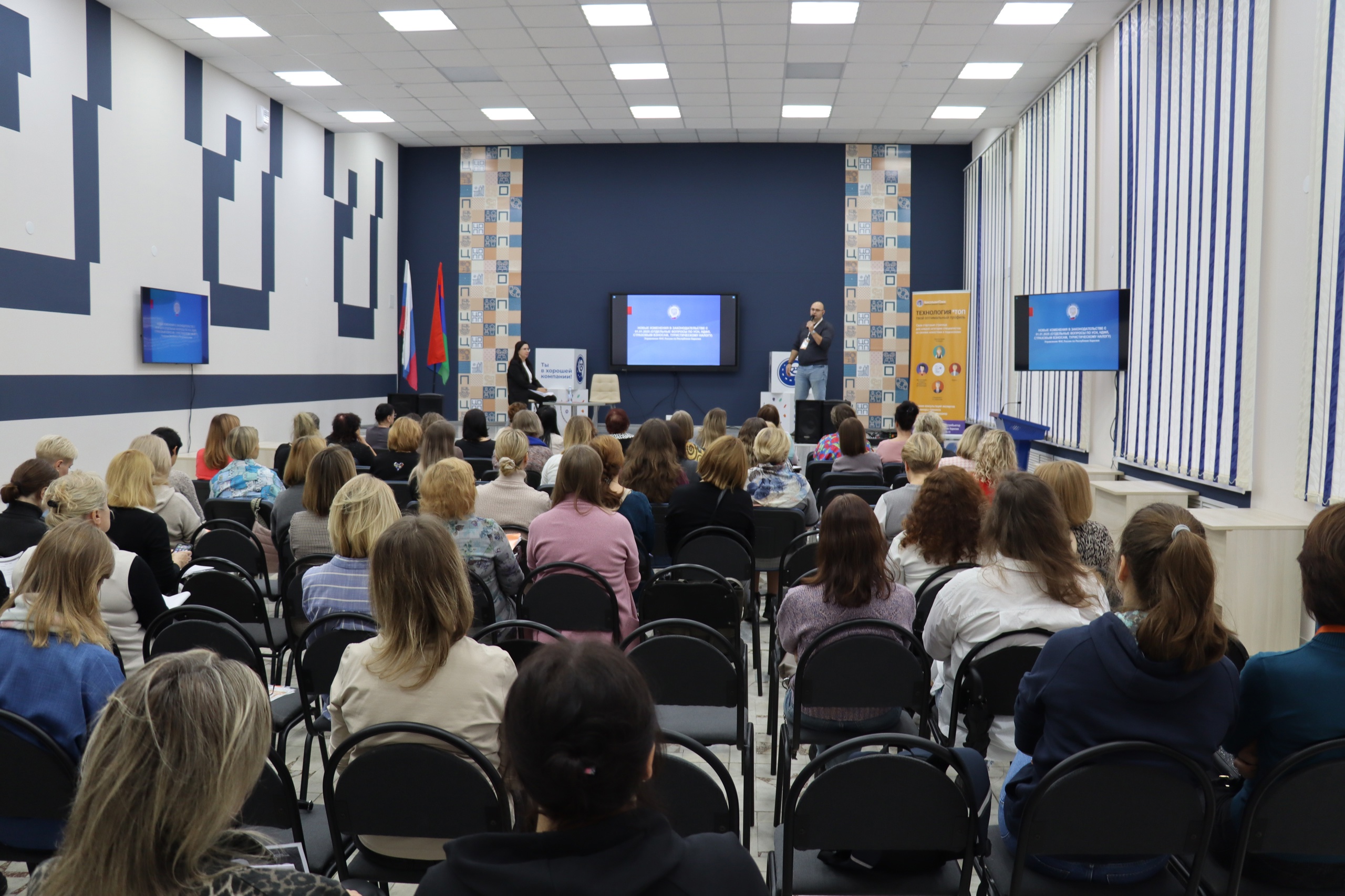 Организатором мероприятия выступила ООО «Дата» — Региональный информационный центр КонсультантПлюс в Республике Карелия. Приглашенный спикер — Петух Елена Николаевна, заместитель начальника отдела оказания государственных услуг УФНС России по Республике Карелия — разъяснила изменения, связанные с системами налогообложения Российской Федерации.