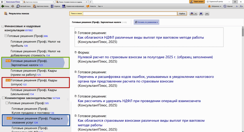 В линейке Готовых решений (Проф) есть продукты и по другим популярным темам: налог на прибыль, НДФЛ, прием на работу, увольнение, бюджетный учет, госзакупки, купля-продажа и поставка. Все эти продукты поставляются отдельно.